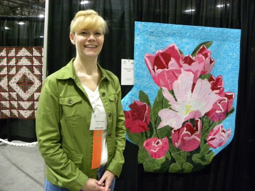 Here I am with my quilt. Everyone, the vendors and attendees were all so nice. I had so many people wish me congratulations. It was thrilling.