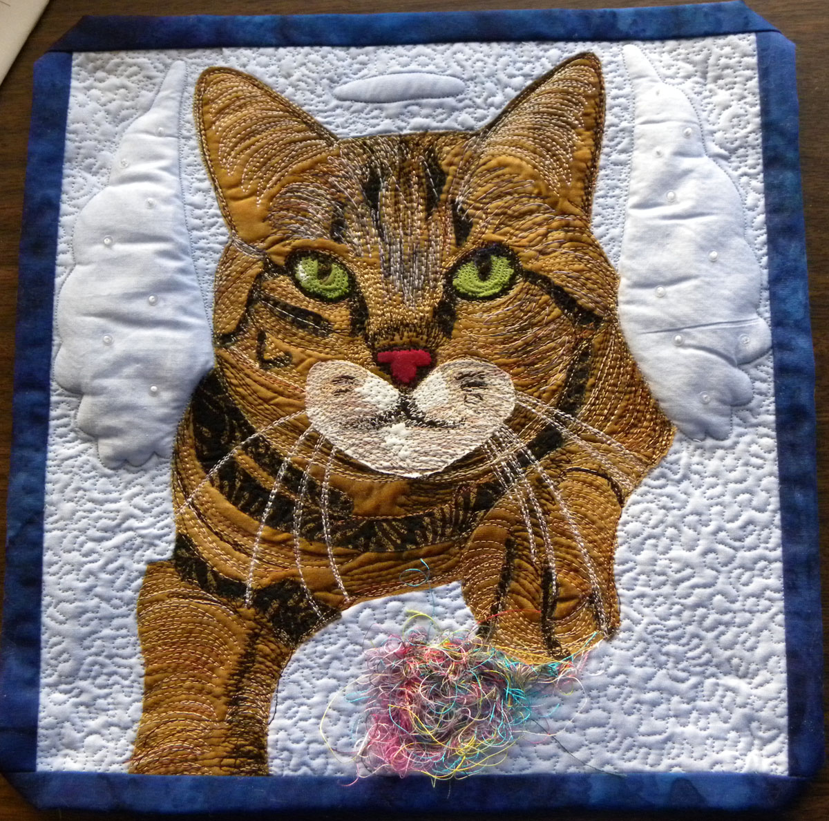 Yup, I feel like I keep having them all the time. Oh, well I should be counting all of my blessings because I have so many. A wonderful husband, a new kitchen that is almost finished, my health, a business that has been doing well even though the economy isn’t and many furry angels that have come into my life. Here is my Herman. The first kitty I had. He only lived 9 years but he was a special kitty. He was so special I had to create a quilt about him. He was my Hermee Angel and I know he’s in kitty heaven having a great time.