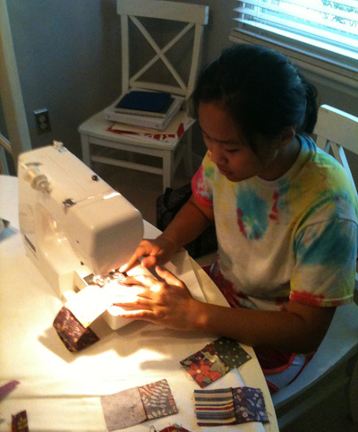 I’ve been teaching my niece to sew. I got her a jelly roll several months ago and now that she’s on her summer vacation we’ve had 3 intense sessions. She’s done so well especially since she’s never done any type of sewing before.