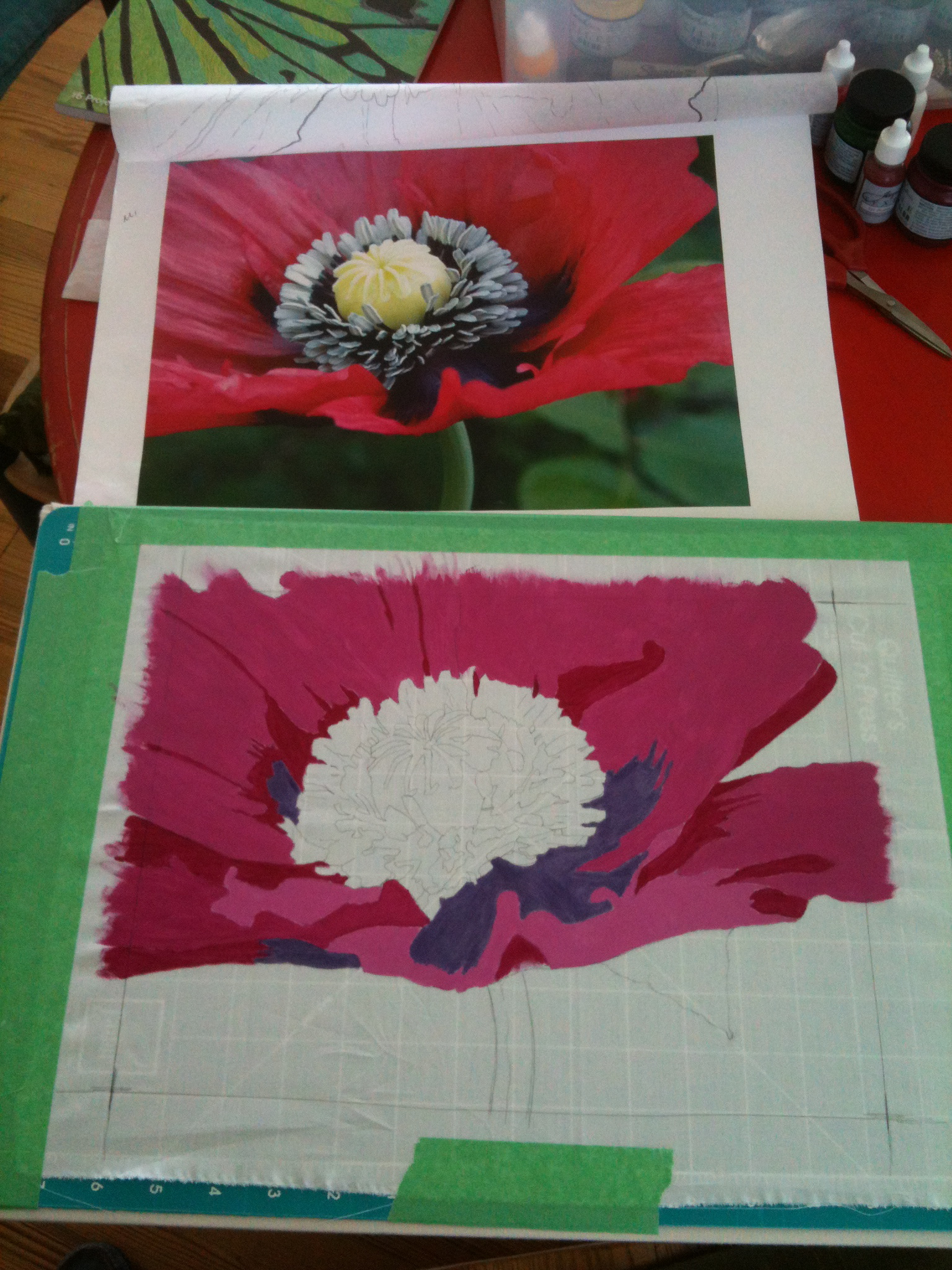 I love poppies and this one I shot at Wing Haven. Here’s the poppy in the middle of the painting process.