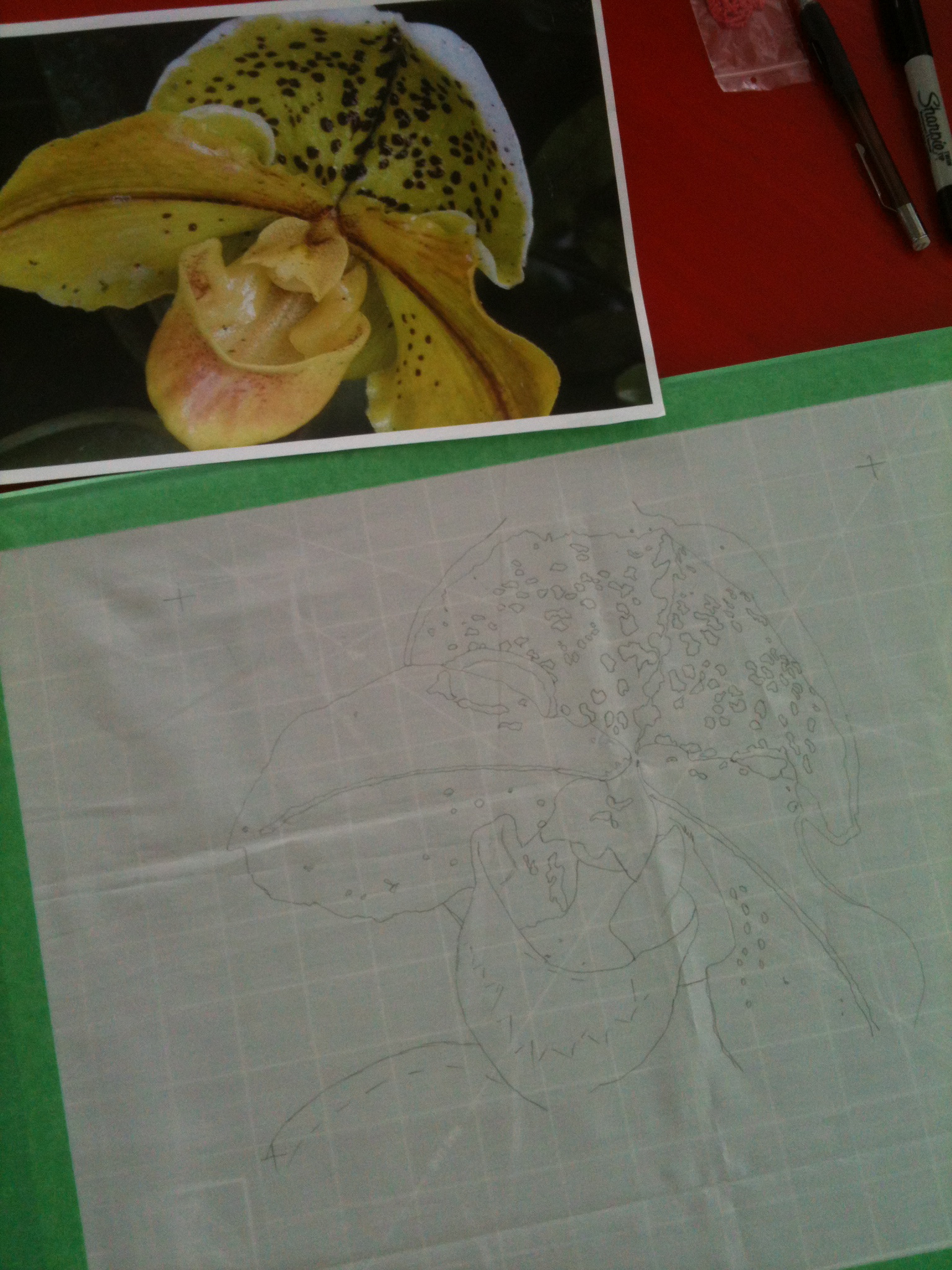 Orchid painting complete. Time for thread sketching.