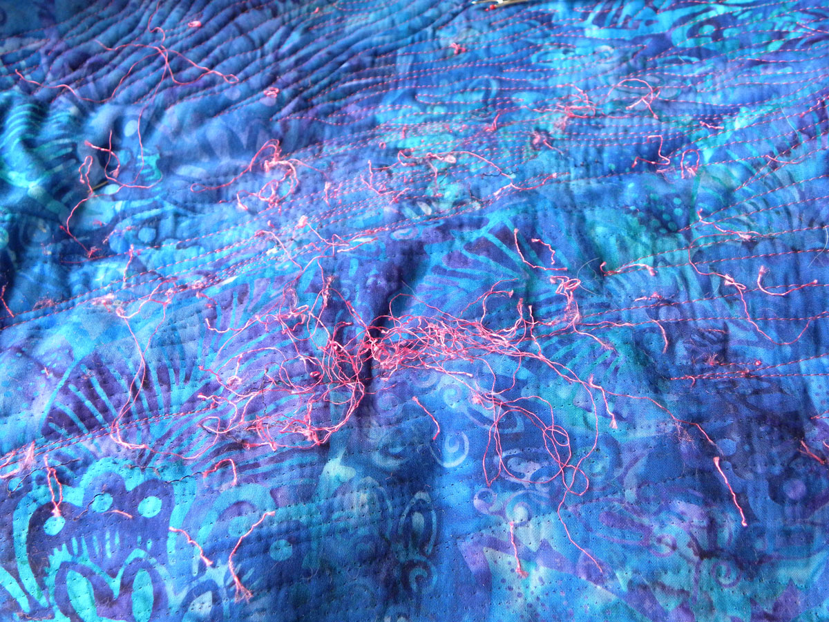 What a mess! But, I’m not happy with the free motion stitching and I have to fix it.